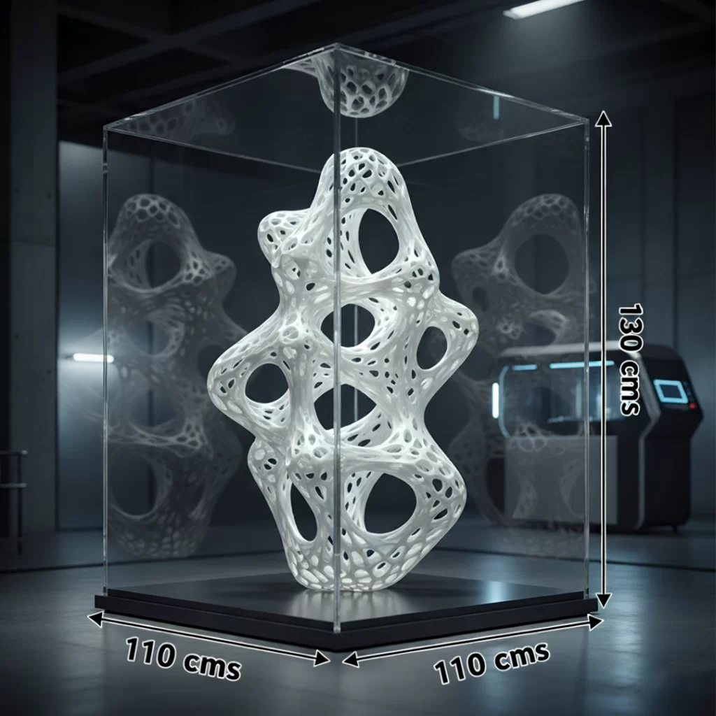 Somos la primera empresa en Colombia especializada en impresión 3D de gran formato con pellets, capaz de producir piezas de hasta 110 x 110 x 130 cm.